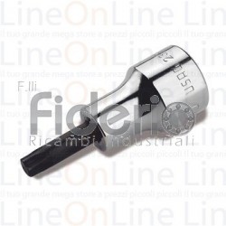 Chiavi a bussola per viti con impronta TORX da 1/2" T27x24 Usag. Acciai speciale altamente legato al Cromo Vanadio Esecuzione cromata con inserto fosfatato